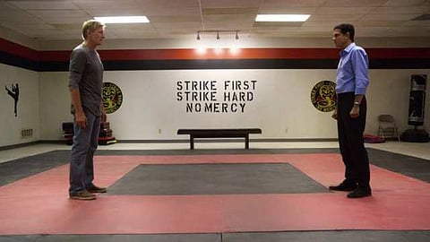 The narrative is built around Lawrence's attempts to update and rehabilitate the Cobra Kai mantra of "strike first, strike hard, no mercy". In the original film, this is portrayed as an irredeemably negative vision of karate. But in the series, it becomes a source of strength and pride for those struggling in a world that has rejected them.