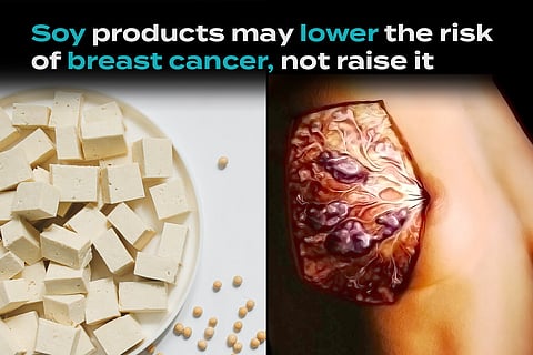 <p>One longstanding claim against soy is that its estrogen-like isoflavones could promote breast cancer, but many studies have shown the opposite. Women who consume soy products have been found to have no greater risk or even a lower risk of developing breast cancer than those who eat little or none. However, the available evidence is too limited to draw firm conclusions.</p>